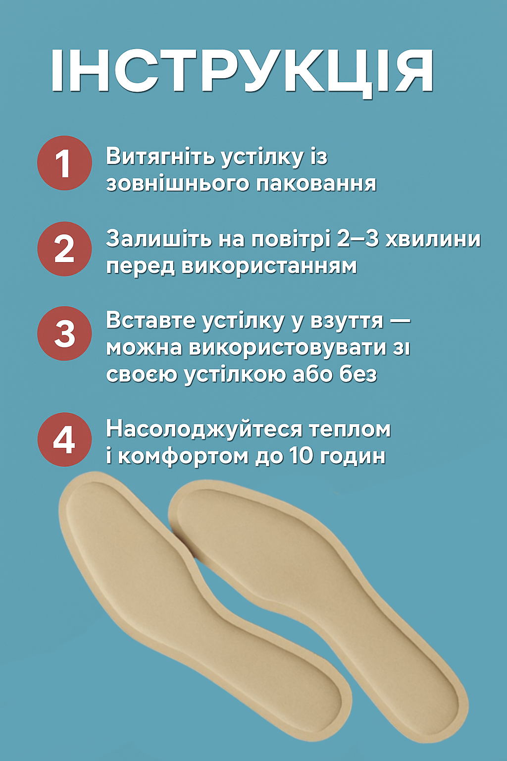Купила для работы на улице — просто супер! Ноги перестали замерзать даже в сильный мороз. Очень удобно, что стельки тонкие и не ощущаются в обуви. Однозначно рекомендую всем, кто проводит много времени на холоде.